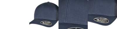 Two-toned trucker cap with adjustable, color-matching snapback closure, made of cotton and polyester, one size fits all, Flexfit 110 technology, 8-fold quilted, pre-bent visor.