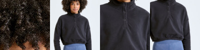 Cropped pull-over fleece with high neck. 1/4 neck popper fastenings to front. Elasticated waistband. We recommend using block out vinyl and inks.Product contains no branded neck or waist label. Removable Kimble or looped garment tags. Inner seam label holds important product information on one label with a second label containing brand information which can be cut-away.