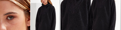 Sherpa pull-over fleece with 1/4 zip to front. Oversized fit. Hood. Matching colour binding to hood, hem, and sleeves. Drop hem to back. We recommend using block out vinyl and inks.Product contains no branded neck or waist label. Removable Kimble or looped garment tags. Inner seam label holds important product information on one label with a second label containing brand information which can be cut-away.