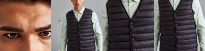 Water-resistant padded vest, with a full-length zip and 4 pockets, one of which doubles as a stow pocket. Recycled polyester mini ripstop with EcoShield DWR finish outer and lining. ThermoPro recycled polyester fill and recycled zip tapes. 4 pockets: 2 welted zipped lower, 1 concealed zipped inner and 1 passport RFID.