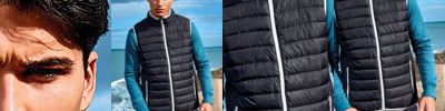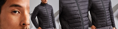Reverse coil zip on centre front with signature zip pull. Quilted horizontal stitched wide and narrow baffles. Quilted hood with elasticate edge. Fully lined in Polyester. Elasticate armholes for a snugger fit. Internal zipped opening for embroidery access. Reverse coil zip side pockets. Internal zip pockets. Internal storm flap with chin guard. Product contains no branded neck label.* Removable Kimble or looped garment tags. Inner seam label holds important product information on one label with a second label containing brand information which can be cut-away.