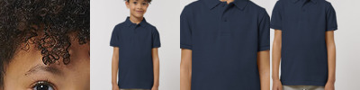 100% Organic cotton. Kids polo. Set-in sleeve. Flat knit rib on collar and sleeve hem. Piqué 220gsm fabric. Inside back neck tape in single Jersey. Front placket with 2 buttons in matching body colour. Slit at side seams with single Jersey facing. Single needle topstitch at shoulder seams. Bottom hem with narrow double topstitch. Back length is longer than front length.