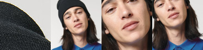 100% cotton twill. Seamless, centralised front panel.Child safe secure button.Pre-curved peak.Fold-up ear and neck protection.Elasticated size adjuster.