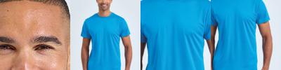 Wicking fabric. Stretch. Crew neck. Short sleeve. Lightweight. Twin-needle stitching on hem and arms. Recycled polyester. We recommend using block out vinyl and inks.Product contains no branded neck or waist label. Removable Kimble or looped garment tags. Inner seam label holds important product information on one label with a second label containing brand information which can be cut-away. UPF 40+.