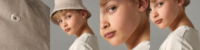 100% Organic cotton twill. Lining: Polyester cotton blend. Contains 100% certified organic cotton. Protection against sunlight – UPF50+. Unisex styling. Stitched ventilation eyelets. Fully lined. TearAway label for easy rebranding. Available in two sizes – S/M (3–6 years) and M/L (7–12 years).