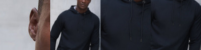 Fabric using recycled materials. Regenerated cotton mixed with recycled polyester. Brush back fleece. Set-in sleeves. 3-piece hood with drawcord and metal ends. Ribbed cuff and hemline. V insert at neckline. Regular fit. Henbury cut-out label for easy rebranding.