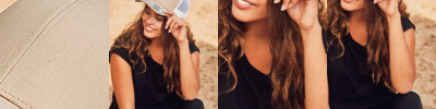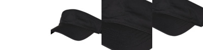 Reversible bucket hat, brim, sweatband.