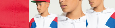 Snapback, curved visor, six-panel. Made from recycled polyester.