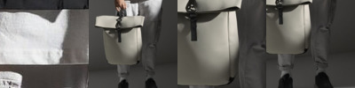 100% Recycled polyester with matte-look PU coating. PVC-free. Water-repellent fabric. Padded internal laptop sleeve, compatible up to 15.6'. Minimalist styling. Zipped front pocket. Double-layer base panel for durability. Roll-top closure. Secure clip closure. Padded adjustable shoulder straps. Grab handle. TearAway label for easy rebranding.
