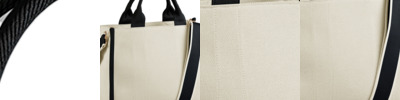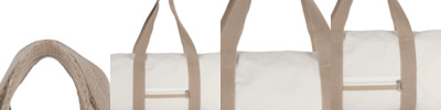 66% polyester/23% cotton/11% other fibres. Premium twill fabric.Recycled polyester soft touch lining.Internal foam padding.Contrast carry handles (32cm long), natural is self colour.Contrast detachable adjustable shoulder strap (172cm long).High shine gold metal trims.Main zip compartment.Internal baseboard.Tear out label.Capacity 10 litres.Concealed zip in lining for decoration.