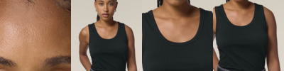 The Stella Ava fitted tank top for women. Sleeveless. 1x1 rib binding at collar and armhole. Overlock at back neck. Twin-needle topstitches at hem.