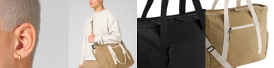 Structured design. Premium twill fabric. Soft-touch lining. Hidden-lining zip for easy decoration access. Zipped main compartment. Zipped internal valuables pocket. High-shine gold metal trims. Self-fabric carry handles. Can be carried by hand or over the shoulder. TearAway label for ease of rebranding. Lining: 100% recycled polyester.