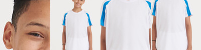 Contrast inserts on front and back sleeves. Crew neck. Raglan sleeve design. AWDis's own Neoteric TM textured fabric with inherent wickability. Self fabric taped back neck. Self fabric collar. Printed back neck. Size (Age) XS - 3/4, S - 5/6, M - 7/8, L - 9/11, XL - 12/13"