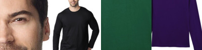 Deluxe 30’s Soft style yarns. Seamless twin needle ¾” collar. Taped neck and shoulders. Rolled forward shoulders for better fit. Hemmed sleeves. Twin needle sleeves and bottom hems. Quarter-turned to eliminate centre crease.