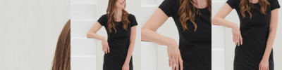 Scoop neck with capped sleeves. Shaped to fit