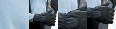 2 way stretch Softshell. Waterproof material. Breathable. Comfort sport fit. Extended wrist cover. Side zip which allows for embroidery access. Palm grips. Tech performance logo blind stamped on back of glove. Water repellent.