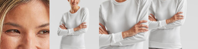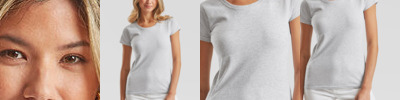 Rib crew neck with self-fabric back neck tape. Shaped side seams for a feminine fit. Fine knit gauge for enhanced printability.