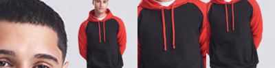 Twin needle stitching detailing. Contrast raglan sleeves. Double fabric hood. Contrast flat lace drawcord. Kangaroo pouch pocket with small opening for ear phone cord feed. Hidden ear phone loops. Ribbed cuffs and hem. Soft cotton faced fabric creates ideal printing surface. Simple tear out label makes it perfect for rebranding. Worldwide Responsible Accredited Production (WRAP) certified production . Washing Instructions Machine wash 30°. Do not bleach. Tumble dry possible at low heat. Cool Iron. Do not dry clean. Wash dark colour separately.