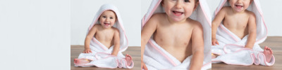 Luxury baby towel with hood. Excellent absorbency. Exceptional softness. Contrast binding. Size 75 cm x 75 cm