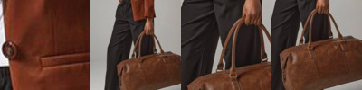 Quality full grain leather look PU. Fully lined in pinstriped fabric. Snap fastening fold down ends. Vintage style metal fittings. Internal valuables pocket. Internal baseboard. Extra long main compartment zip for easy access. Self fabric carry handles. Can be carried by hand or over the shoulder.