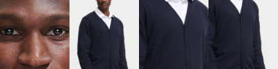 49% cotton/49% acrylic/2% polyamide. Set in sleeves.Six self colour buttons.Ribbed trim with elastane at cuffs and hem.