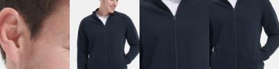 50% ringspun cotton/50% polyester. Brushed back fleece.Raglan sleeves.Full length zip.2x2 ribbed collar, cuffs and hem.Taped neck.Two front pockets.Flatlock stitching detail.