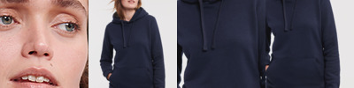 80% combed ringspun cotton/20% polyester. Cotton faced fabric.Brushed back fleece.Drop shoulder style.Ladies fit.Double fabric hood with topstitch detail.Flat lace drawcord with buttonhole eyelets.Taped neck.Front pouch pocket with bartacks.Ear phone access.1x1 ribbed cuffs and hem.Coverseamed around hood, shoulders, armholes, cuffs and hem.