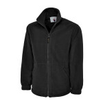100% polyester. This item runs small in comparison to some other brands. Please check sizing before decoration.Pill resistant.High density.Unlined.Taped neck.Collar high full length zip.Two front zip pockets.Elasticated cuffs.Adjustable drawcord hem.
