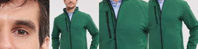 Three layer soft shell. 92% polyester/8% elastane woven outer.Performance membrane.Polyester micro fleece inner layer.Shower resistant 5000mm, windproof and breathable.Collar high full length zip with chin guard and inner zip guard.Mesh lined front panels.Right chest zip pocket.Two front zip pockets.Adjustable cuffs.Curved back drawcord hem.Access for decoration.