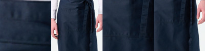 Short style bar apron. 3 open pockets. Size: One Size Dimensions Width 60cm. Drop 33cm.