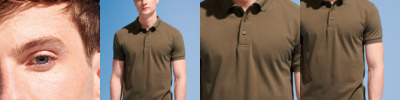 65% polyester/35% ringspun cotton. 1x1 ribbed knit collar and cuffs.Taped neck.Three self colour button placket.Reinforced shoulder seams.Twin needle hem.60°C wash.