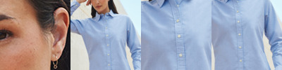 Wrinkle resistant fabric. Ladies fit with shaped side seams. Pearlised buttons. Two button adjustable cuffs. Curved hem.