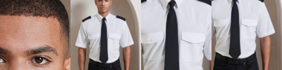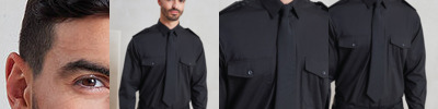 Stiffened Collar, epaulettes on shoulders, two mitred pleated pockets with button fastened flaps, combined pen pocket on left breast pocket, long sleeves with button fastened cuffs. Easycare, soil resistant finish. Size Collar 14½" 15" 15½" 16" 16½" 17" 17½" 18" 18½" 19"