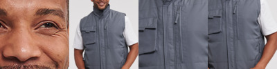 65% polyester/35% cotton canvas outer. Stain resistant DuPont™ Teflon® coating.Polyester padding.Polyester lining.Full length zip with storm flap.Elasticated gusset at armholes for comfort.Large left chest zip pocket.Right chest pocket with multiple compartments.Two front zip pockets.Large internal A4 document pocket.Curved back hem.Suitable for 60°C domestic wash.