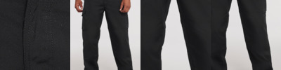 65% polyester/35% cotton canvas. Stain resistant DuPont™ Teflon® coating.Belt loops.YKK zip.Reinforced seat.Media pouch.Triple stitched pocket openings and inseams.Rear pockets, one open, one with tear release closure.Cargo pockets on legs.Inner knee pad pockets.Suitable for 60°C domestic wash.