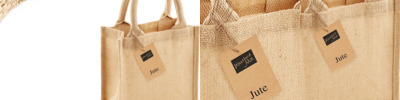 Laminated jute. Cotton carry handles (30cm long).Capacity 4 litres.