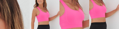 92% nylon/8% elastane. Double layer interlock.Seamless knit.Fitted crop top.Racer back style.Tear out label.