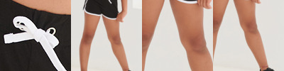 100% cotton. Single jersey.Elasticated waistband with contrast mock drawcord.Contrast white binding, black/black is self colour.Tear out label.