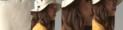 65% polyester/35% cotton. Mesh sweatband and lining for extra comfort.Elasticated drawcord size adjuster with toggle.Metal ventilation eyelets.Offers protection against sunlight UPF50+.
