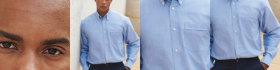 Wrinkle resistant fabric. Button down collar. Left chest pocket. Pearlised buttons. Back yoke with centre pleat. Adjustable cuffs.
