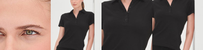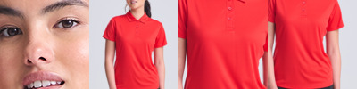 Ladies fit. Neoterictm textured fabric with inherent wickability. UPF 30+ UV protection. Self fabric collar. Self fabric taped neck. Three button placket with self colour buttons.
