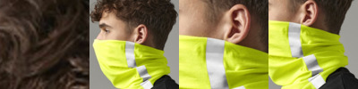 100% polyester microfibre. Breathable fabric.Seam free for comfort.Reflective stripes.Machine washable/non iron.Multi-purpose use.