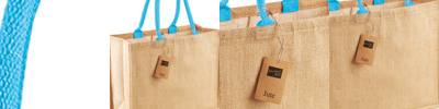 Laminated jute. Cotton carry handles (55cm long).Capacity 21 litres.