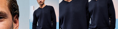 V-neck style jumper. Patch on the inside reverse neck for a contrast effect. Decorative tuck stitching. Ribbed knit on the neckline, cuffs and hem.Washing InstructionsDomestic wash at 40c