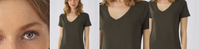 100% Organic Cotton V-neck TEE by B&C fits perfectly, featuring a V-neck, short sleeves and side seams. This luxury women's T-shirt is made of superior combed ring-spun organic cotton, with a very soft hand feel. Its smooth and even surface provides the best blank canvas for printing . Thanks to 'B&C No Label' solution, it's perfect for rebranding. Offered in a wide variety of colours at a very affordable price. DUO Concept: a dedicated men's style for the perfect fit. Stripped back to the essentials, this short-sleeved T-shirt is clean and minimalistic for any occasion. For long-lasting comfort, the neck seams are reinforced with soft binding. Side seams ensure the best fit and a feminine silhouette. Cut in an easy, medium fit, it's the kind of tee you'll dress up and down. Thin medium deep V collar rib for modern, up to date appearance. For long-lasting comfort, the neck seams are reinforced with soft binding. Minimalist cut and detailing suitable for many uses and any end user requirements. The V T-shirt is made from combed organic soft jersey with a luxurious hand feel and long-lasting comfort.Extra soft and smooth hand feel thanks to the ring-spun cotton. Combed yarn ensures a finer, smoother, stronger, more compact, more uniform and cleaner fabric. Comfortable and snug to wear thanks to the organic thin yarn and dense fabric construction. Very smooth and even surface allows bright and crisp printing results. 'B&C No Label' system for perfect rebranding. Tested and approved for all standard printing techniques applicable on cotton.