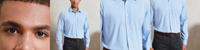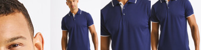 Contrast tipped detail on collar, placket, arm cuffs and side vents. Side panels for a fitted shape. Three button placket.