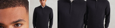 ¼ zip through collar fastening. Cotton rich yarn for a soft feel. Fine gauge knit. Set in sleeve with a ribbed knit cuffs and ribbed hem for fitted styling.