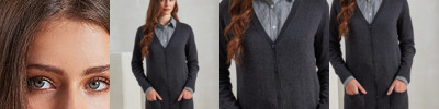 Long length cardigan with cotton rich yarn for a soft feel. Fine gauge knit. Five self-coloured buttons. Two front patch pockets. Ribbed knit v-neck, cuffs and hem.