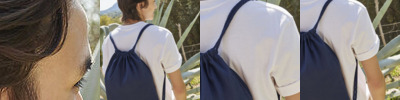 Print-friendly front pocket. Cotton carry handles. Handle length: 55 cm.