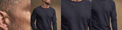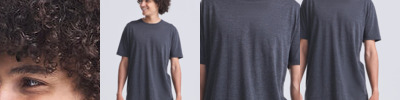 100% ringspun combed cotton. In transition to using organic cotton. Enzyme and silicone washed. Fitted style. Narrow ribbed collar with elastane. Side seams. Twin needle sleeves and hem. 60°C wash.